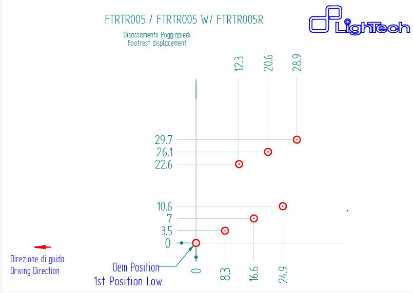 El LighTech FTRTR005R es la variante premium del sistema de estribos para la Triumph Daytona 675 (2013–2020) y Daytona 765 Moto2 (2019–2021). Está dirigido a pilotos que exigen la máxima precisión, estabilidad y estética tanto en la carretera como en la pista.