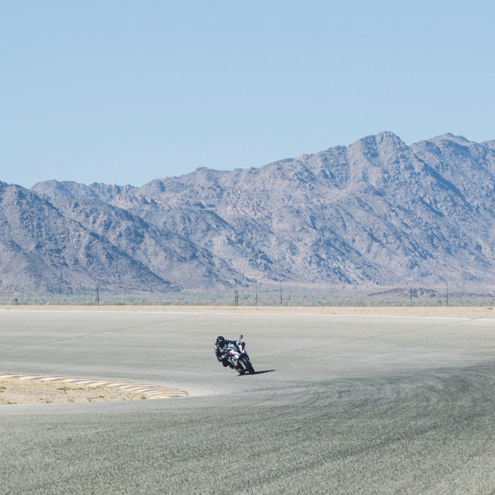 El ajuste Racing ceñido al cuerpo garantiza un contacto directo con la moto y el máximo control.