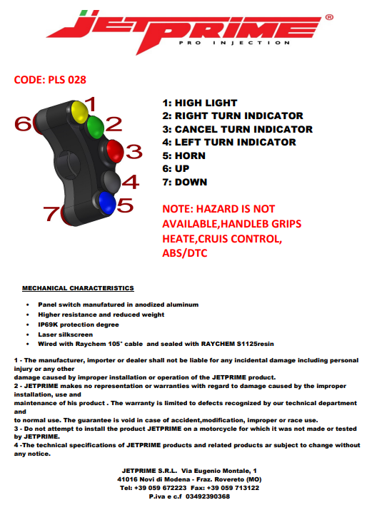 Interruptor de manillar izquierdo Street JetPrime BMW S1000RR (09-14) JP PLS 028